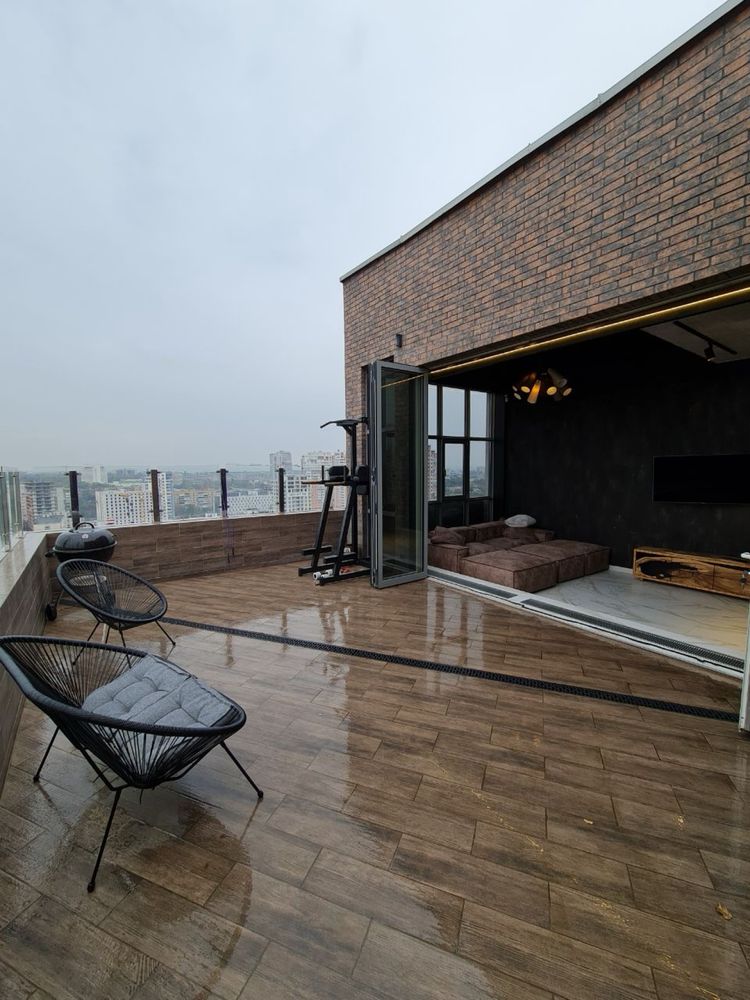 Здам 4 кімн. пентхаус на пр. Науки, 9Д, ЖК Аксіома. Поверх 20/20, квартира на 2 поверхи. Площа 185 кв. м. Власне опалення, тепла підлога, панорамний вид на місто, власна тераса з можливість використання гриля, система очищення та рекуперації повітря по всій квартирі, спальня обладнана захисним протиударним ролетом.