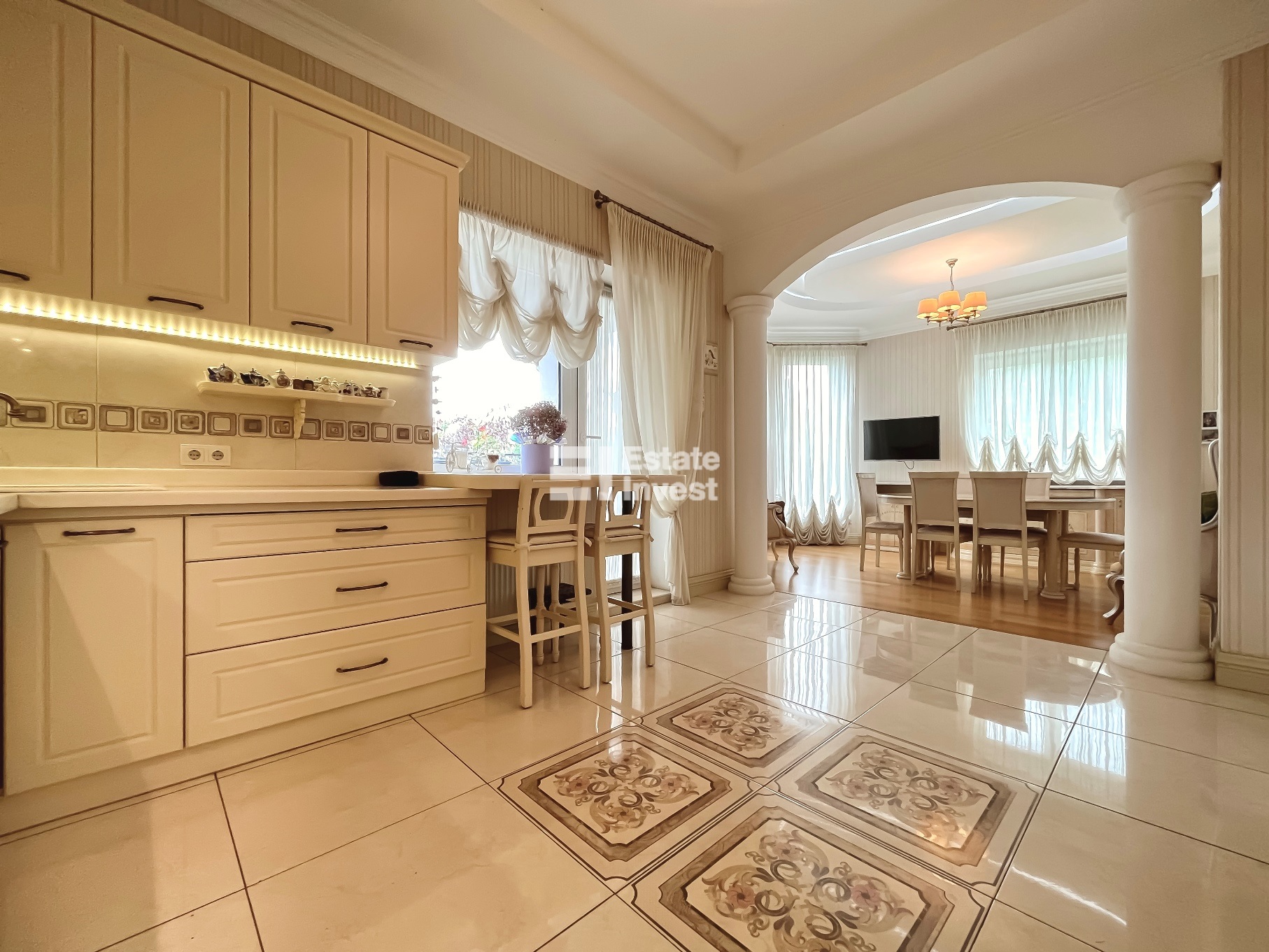 1 поверх — кухня, поєднана зі їдальнею та виходом на літню терасу, вітальня та великий санвузол.